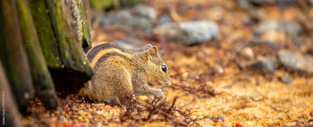 Obraz na plátně Chipmunk against the backdrop of tropical nature