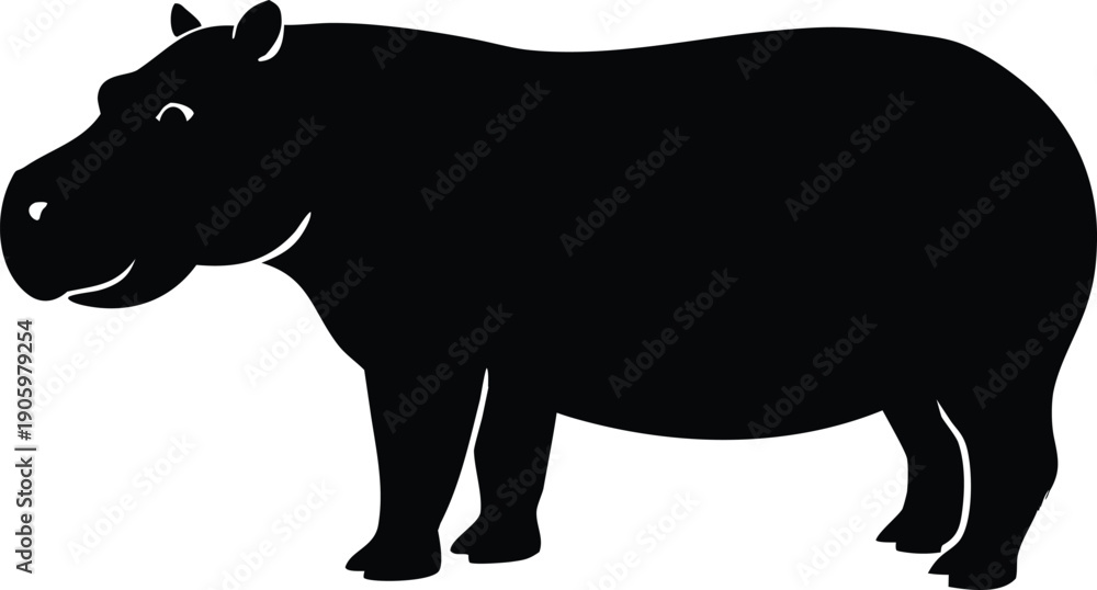 Obraz na plátně Minimal silhouette of hippopotamus standing strong wildlife animal profile Vecto
