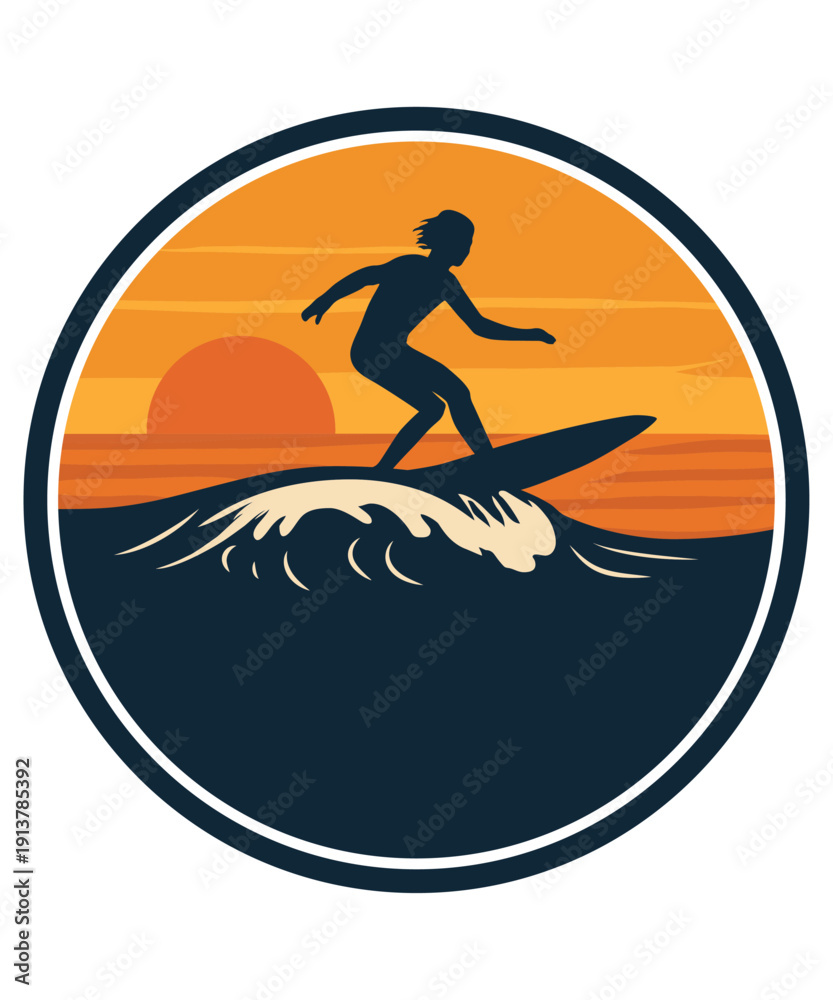 Obraz na plátně A cartoon illustration of a sporty man and woman surfing a massive blue ocean wa