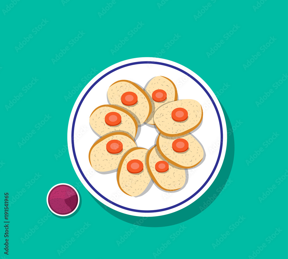 Obraz na plátně Top view, Sliced gefilte fish with carrot on top
