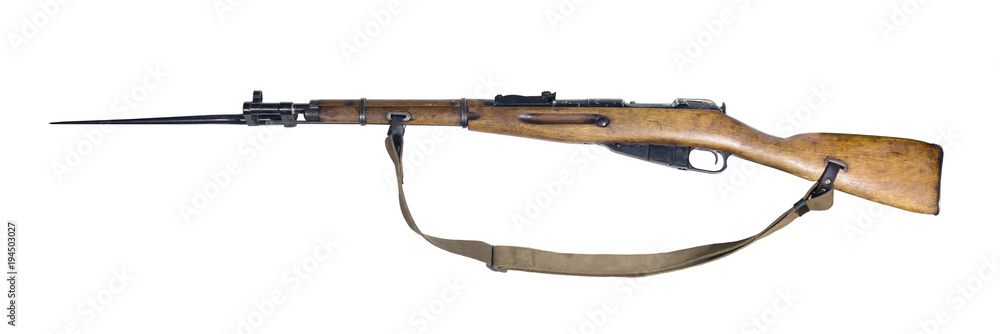 Obraz na plátně vintage military rifle with bayonet in its open position, isolated