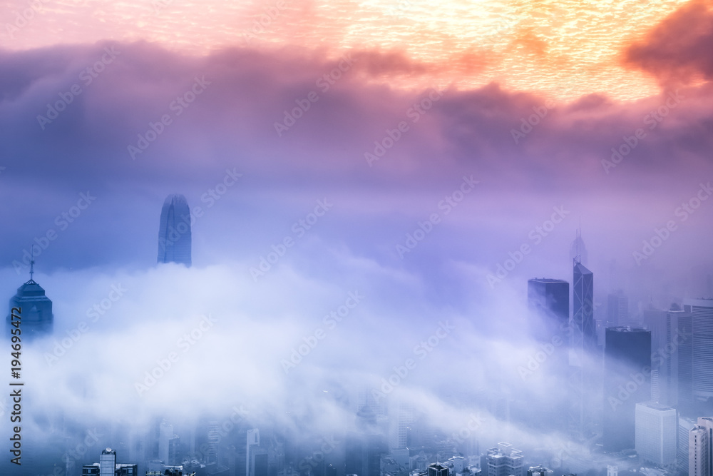 Obraz na plátně Foggy and Cloudy view of Victoria harbor at Hong Kong