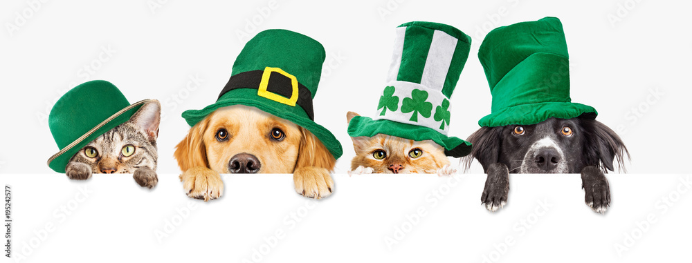 Obraz na plátně St Patricks Day Dogs and Cats Over Web Banner