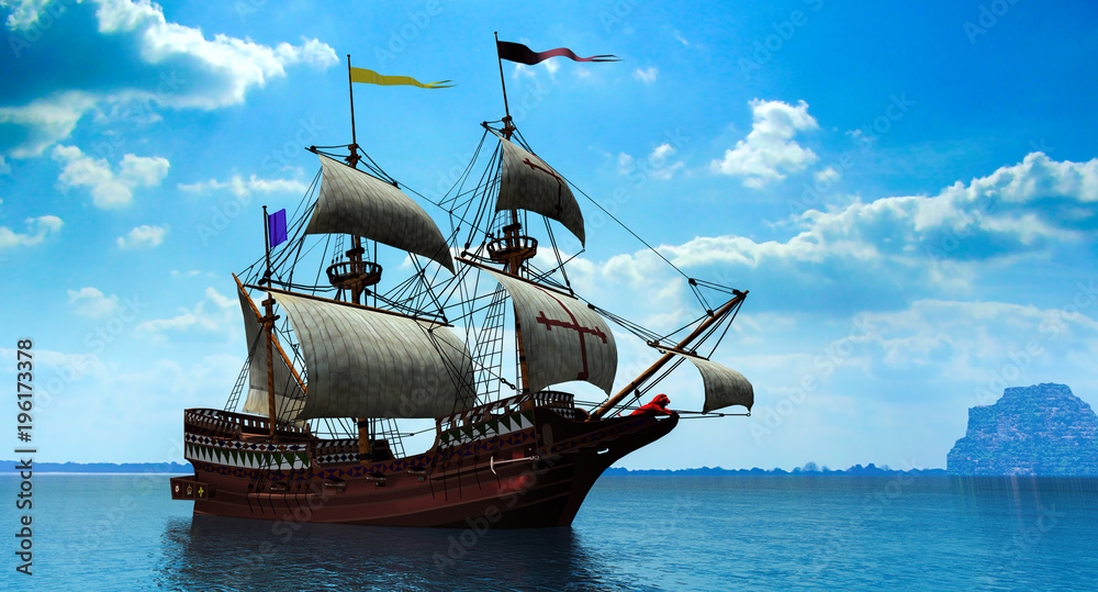 Obraz na plátně 3 d rendering of Spanish galleon on a calm sea