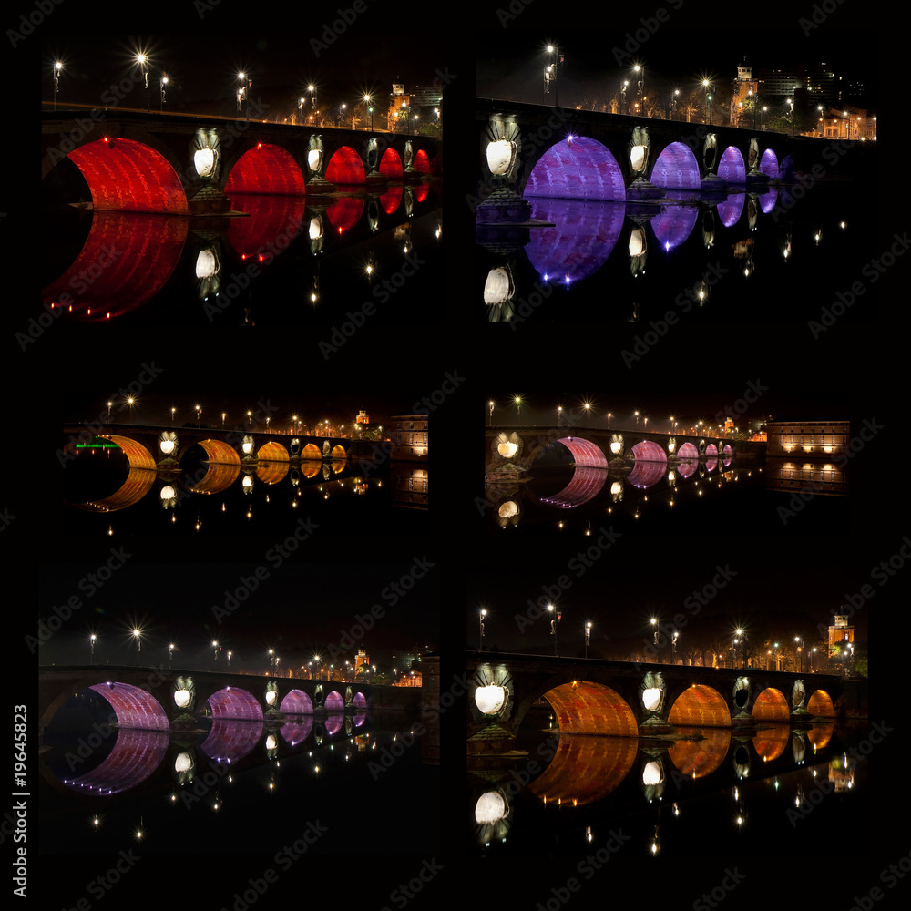 Obraz na plátně Les éclairages des arches du Pont-Neuf de Toulouse
