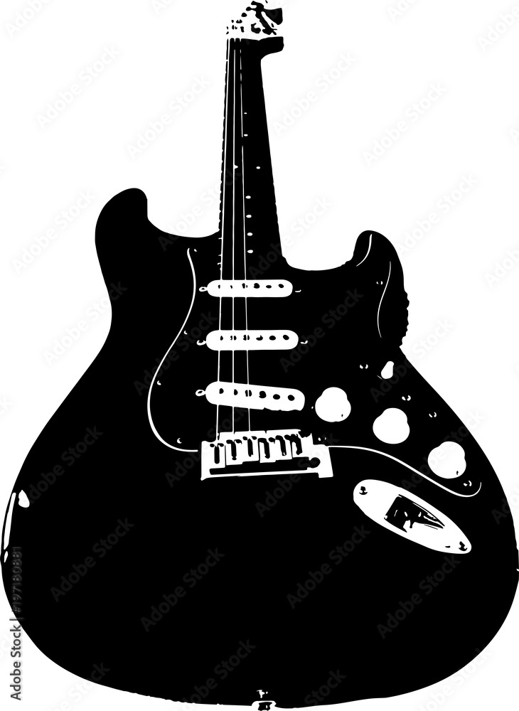 Obraz na plátně Vector image of electric guitar - telecaster. Black and white.