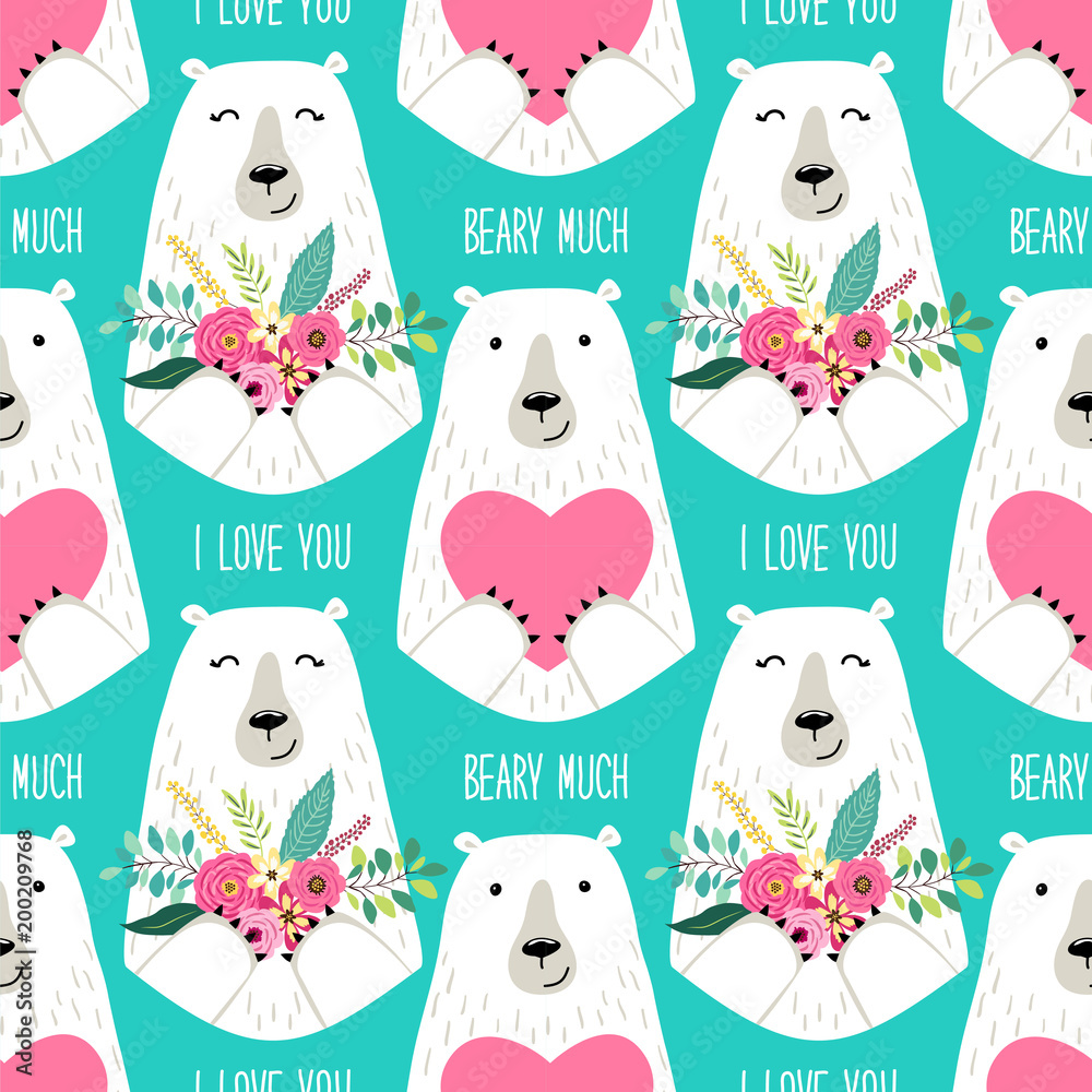 Obraz na plátně Cute childish seamless pattern with cartoon characters of mama bear and papa bea