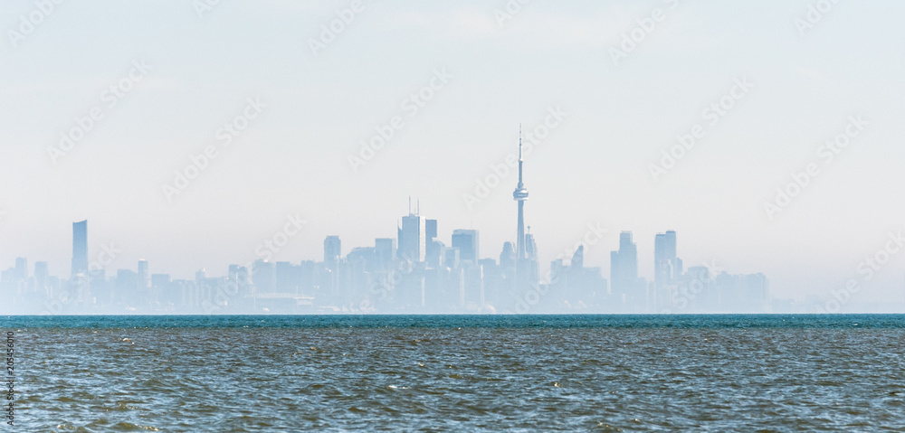 Obraz na plátně Foggy city skyline of Toronto on Lake Ontario.