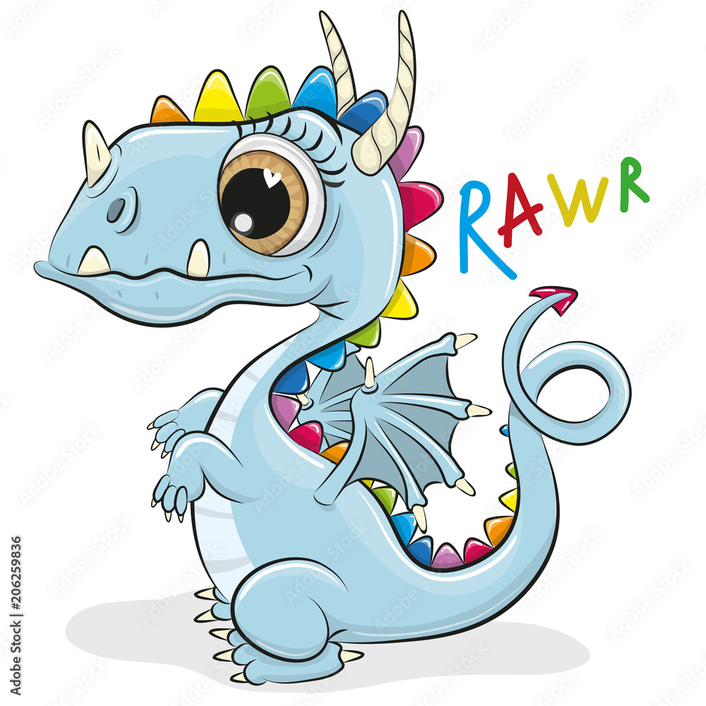 Obraz na plátně Cute Cartoon Dragon on a white background