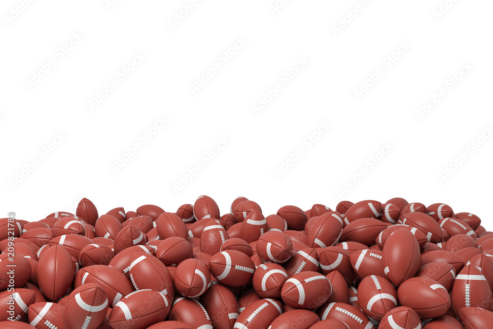 Obraz na plátně 3d rendering of a heap made of countless American football balls lying on each other on a white background
