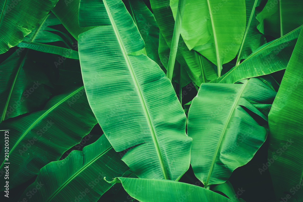 Obraz na plátně Tropical banana leaves, Nature dark green background