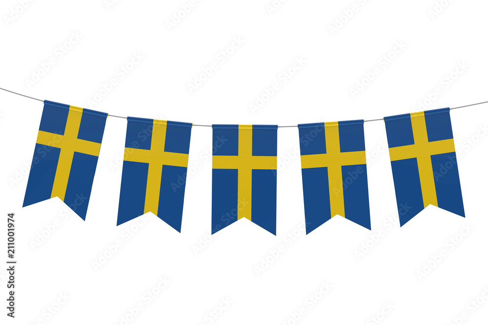 Obraz na plátně Sweden national flag festive bunting against a plain white background