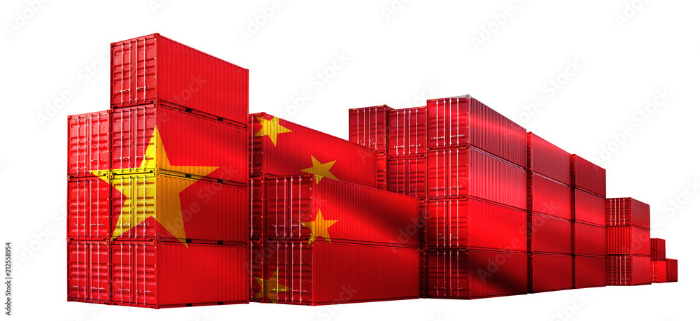 Obraz na plátně Red Shipping Cargo ship business Container import and export company for Logistics and Transportation on White Background