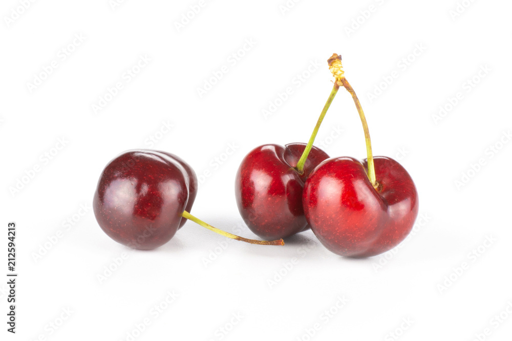 Obraz na plátně Group of three whole sweet bright red cherry set isolated on white