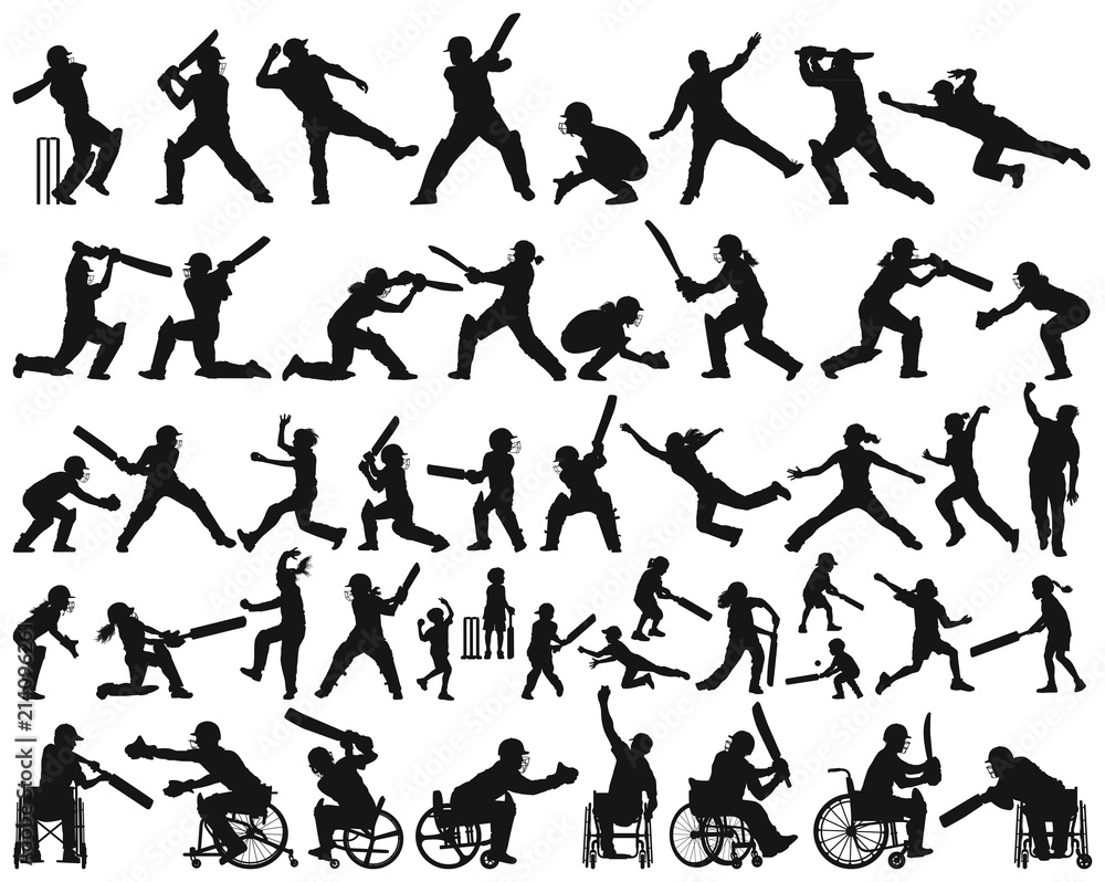 Obraz na plátně Vector silhouette collection of people children man woman and disabled playing c