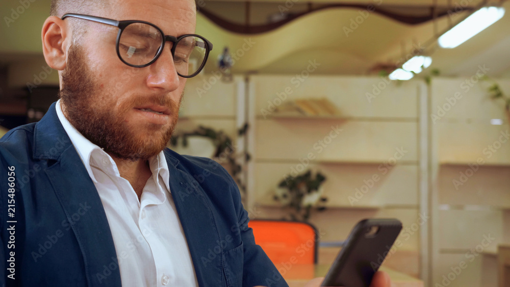 Obraz na plátně entrepreneur scrolling touch screen on cellular