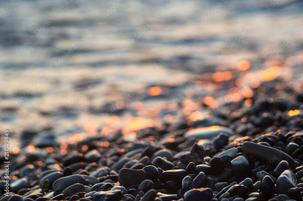 Obraz na plátně pebble stones on the sea beach, the rolling waves of the sea with foam