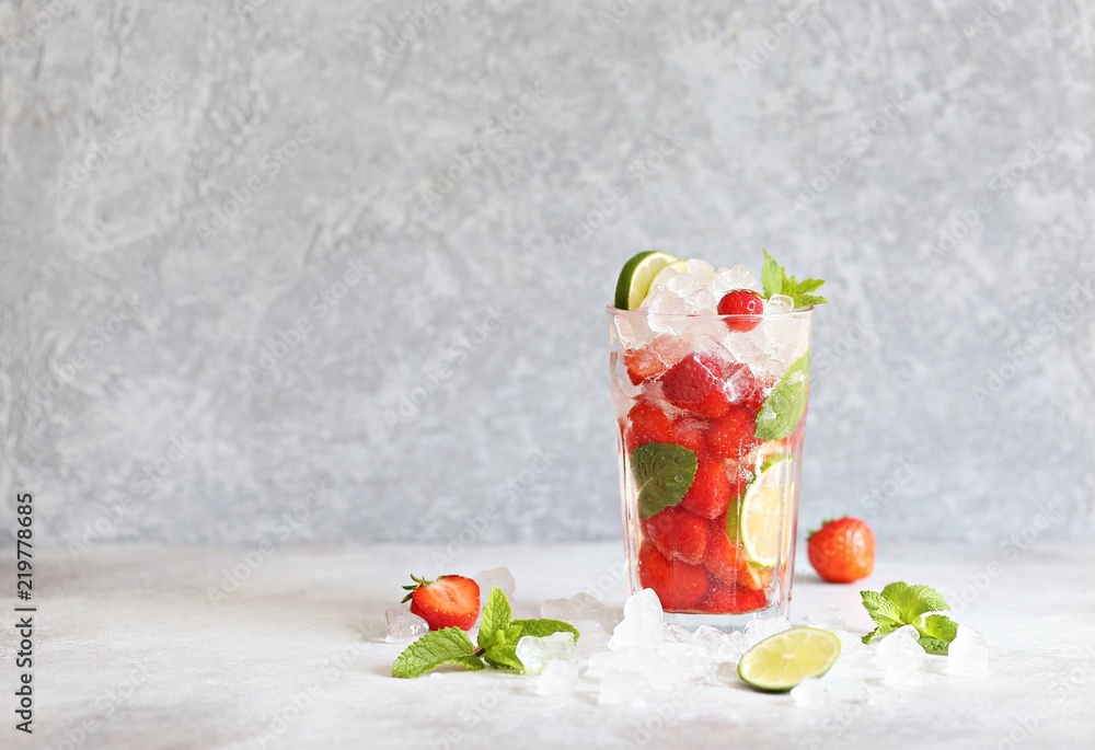 Obraz na plátně Strawberry infused water, coctail, lemonade or tea
