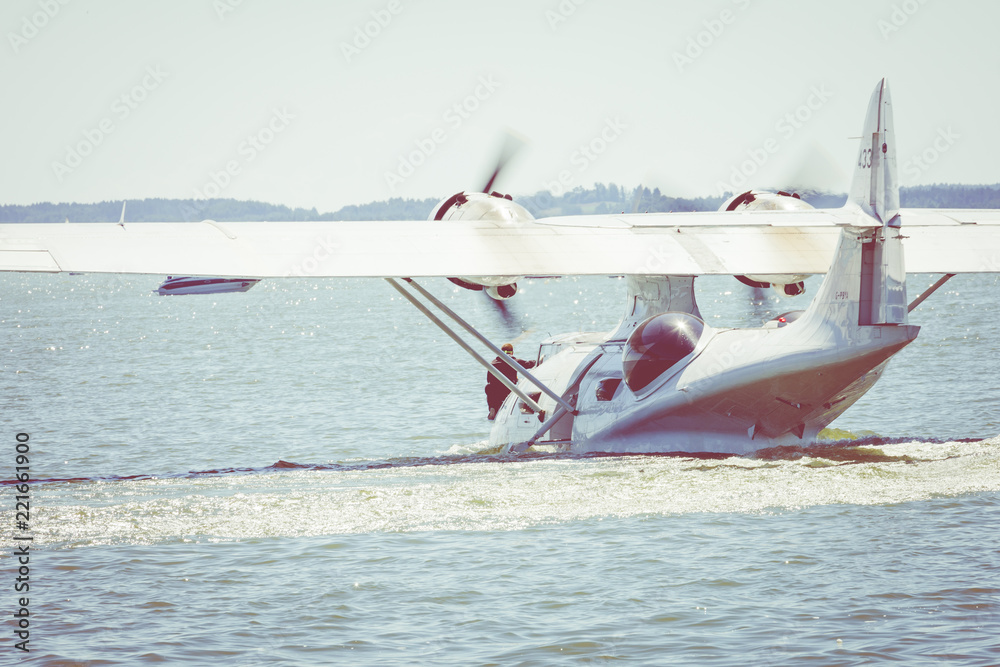 Obraz na plátně Flight Boat Consolidated PBY Catalina at Air Show Mazury 2018 event at the lake Niegocin in Gizycko