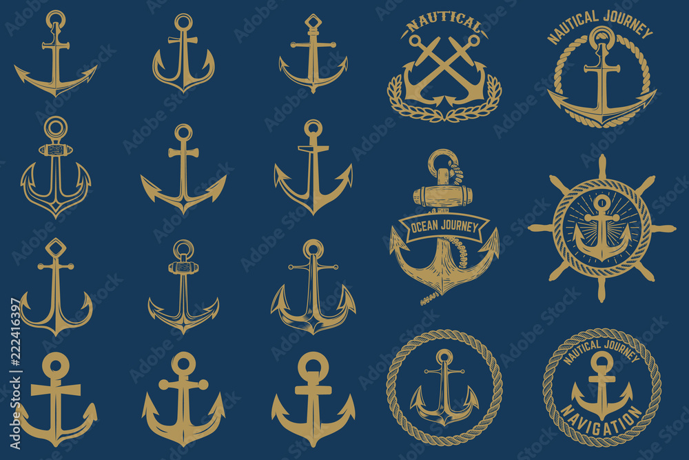 Obraz na plátně Set of nautical emblems and design elements in vintage style