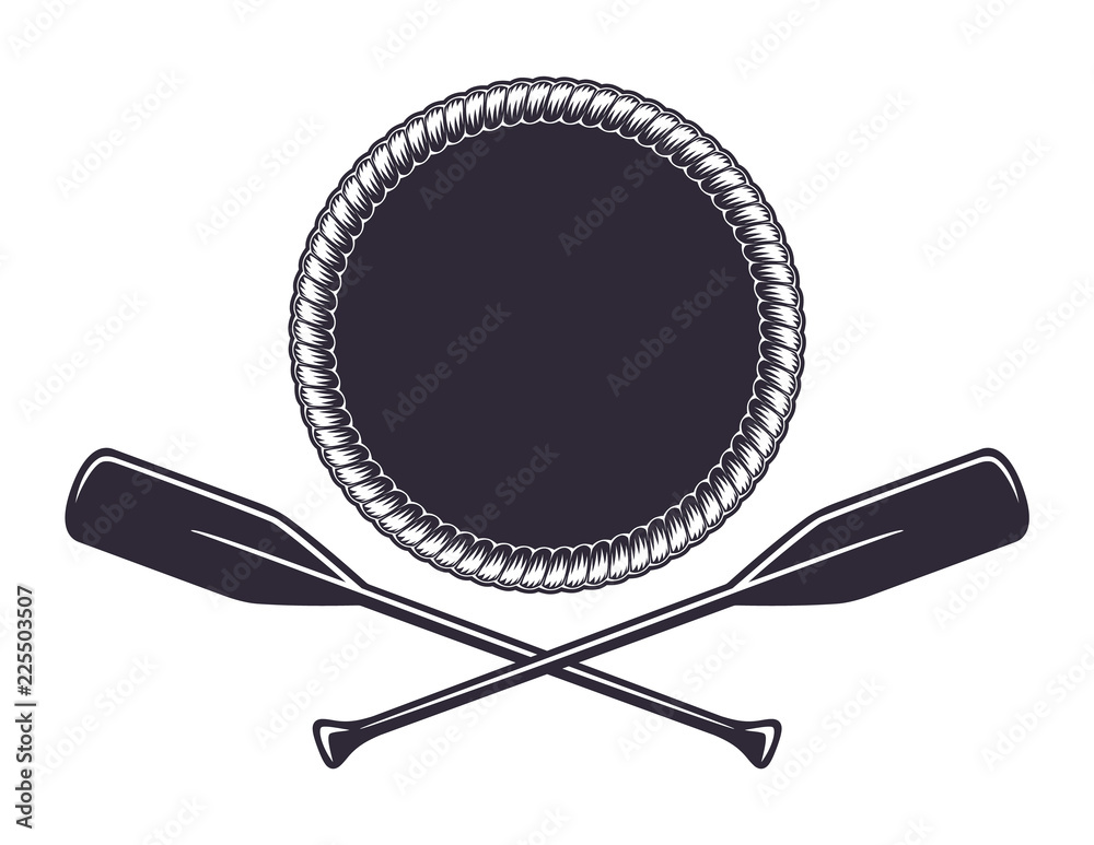 Obraz na plátně Monochrome vintage icon, crossed wooden paddles and sea rope