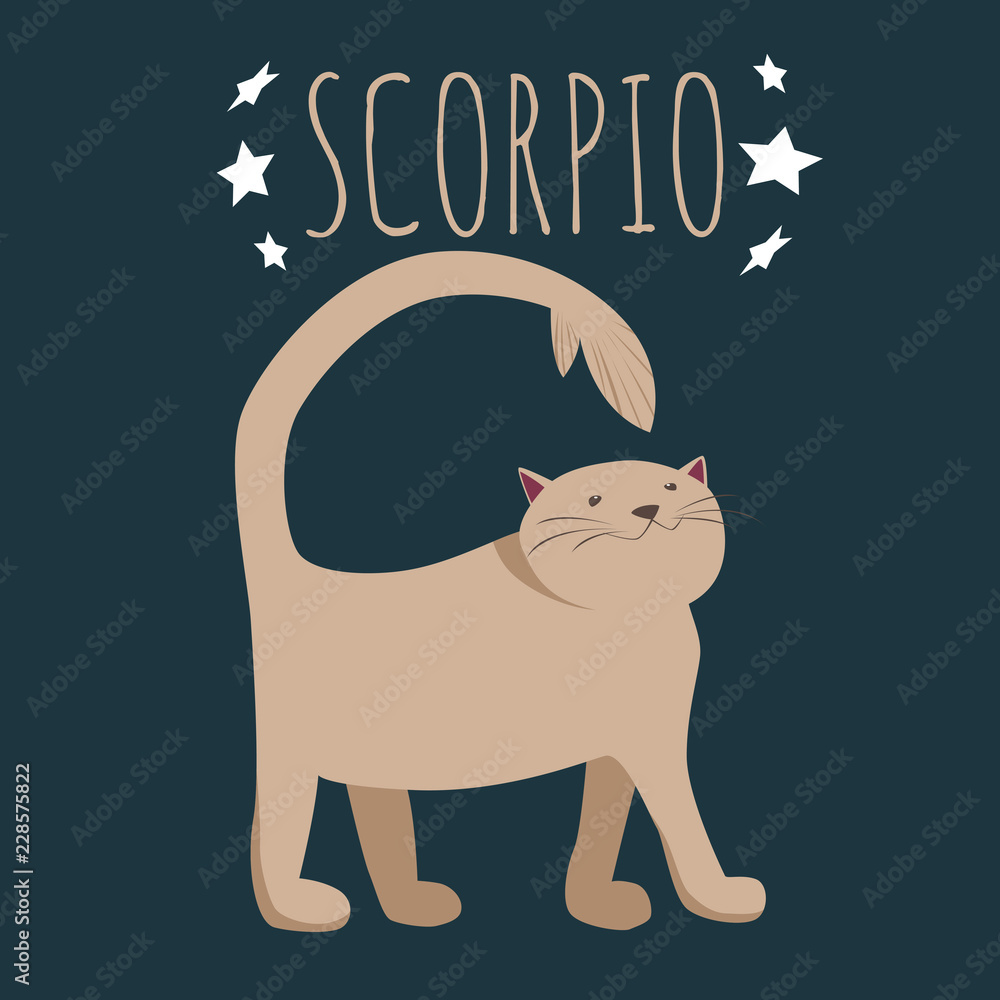 Obraz na plátně Zodiac sign scorpio; cat cartoon character stylized as zodiac scorpio; vector il