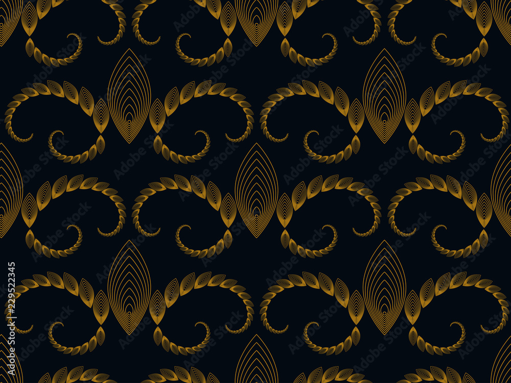 Obraz na plátně vintage linear wallpaper leaves spirals black and gold