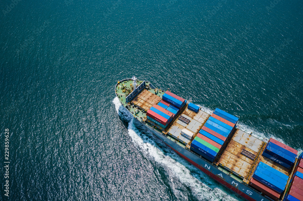 Obraz na plátně business shipping cargo containers import export and exchange fright ship open