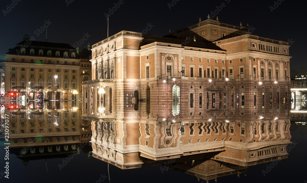 Obraz na plátně Opéra Royal Suédois à Stockholm de nuit