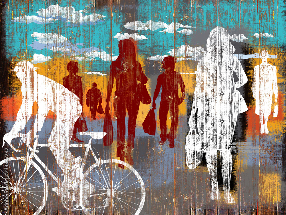 Obraz na plátně people are walking in the street