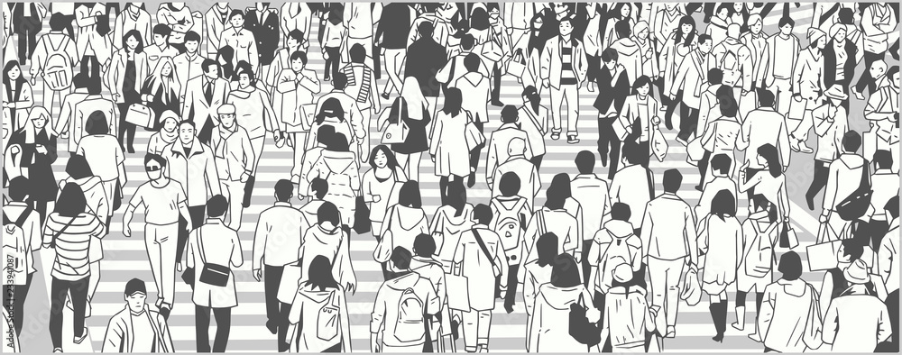 Obraz na plátně Illustration of large city crowd people tourist walking