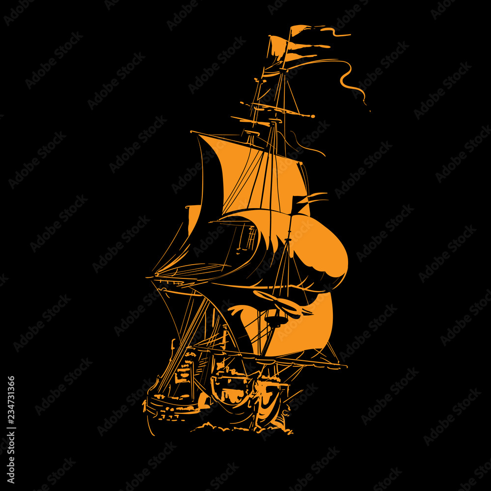 Obraz na plátně Sailing Ship vintage frigate on the waves