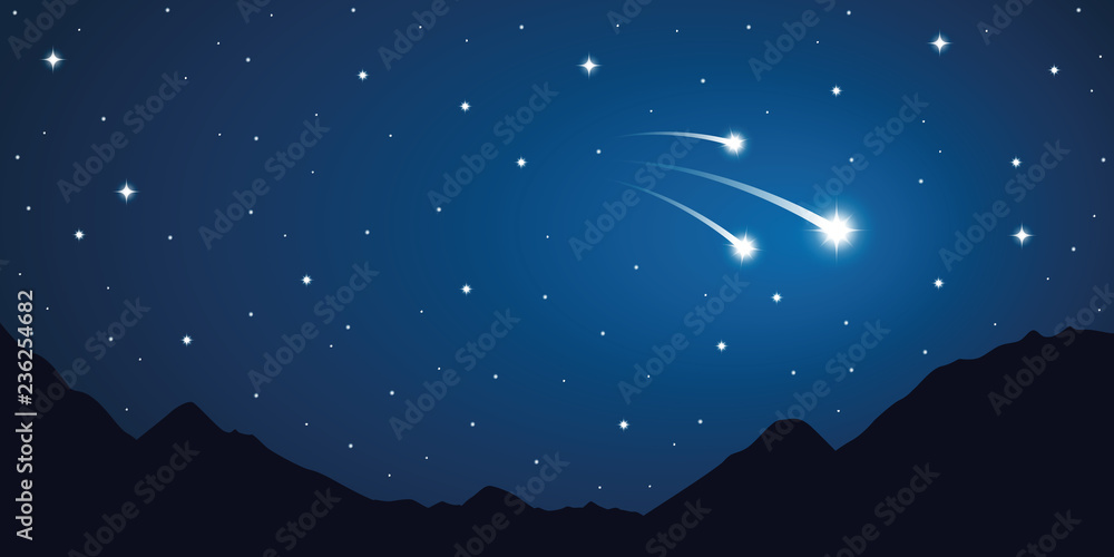 Obraz na plátně three falling stars starry sky in the mountains vector illustration EPS10