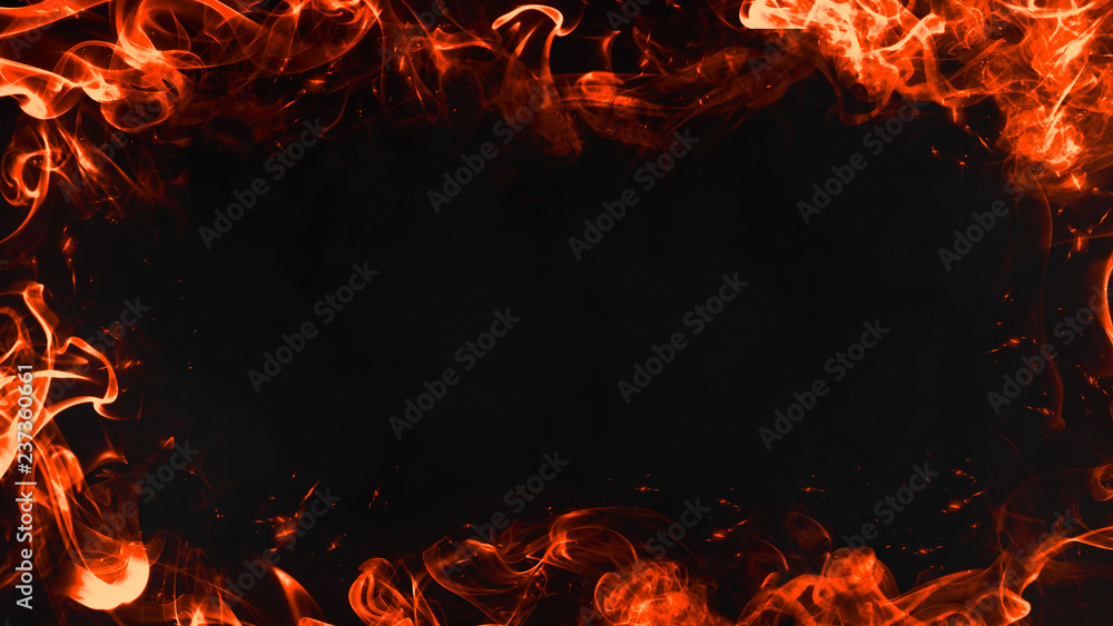 Obraz na plátně Abstract flames frame on isolated a black background