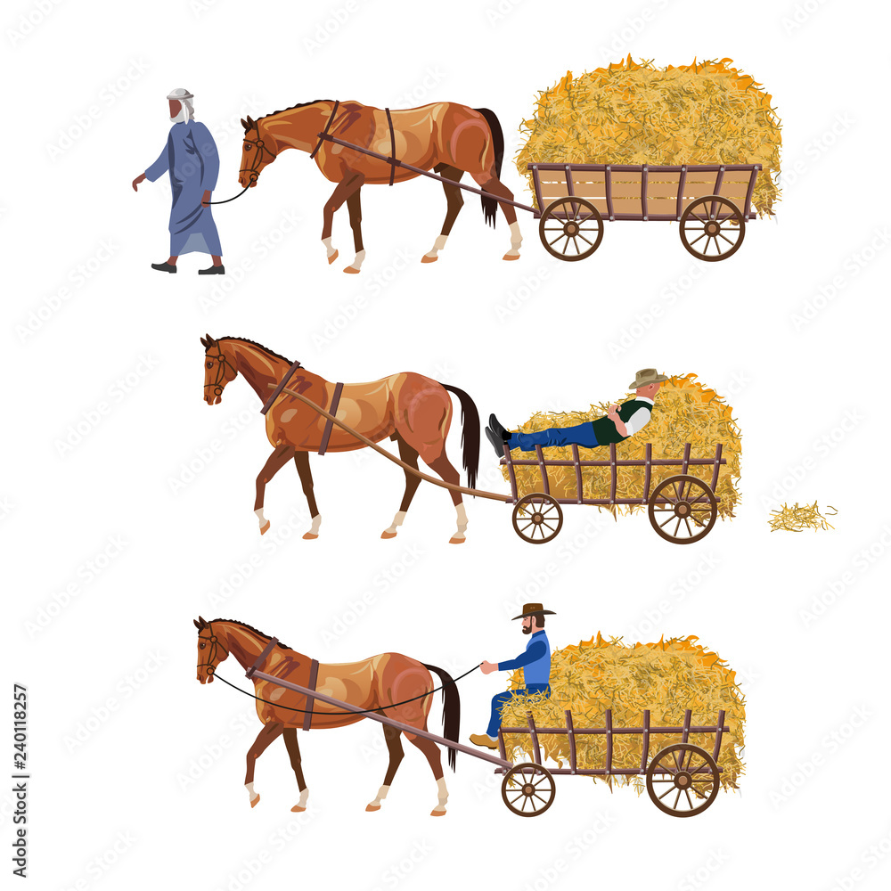 Obraz na plátně Horse-drawn cart with hay