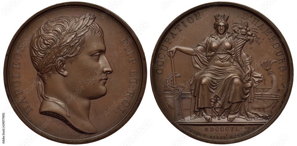 Obraz na plátně France French medal, mid 19th century, subject Occupation of Hamburg by Napoleon