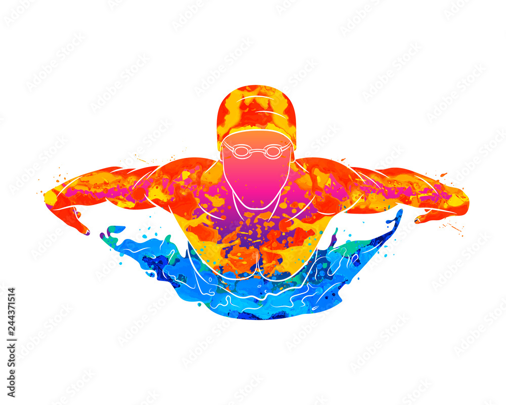 Obraz na plátně Abstract of a swimmer butterfly from splash of watercolors