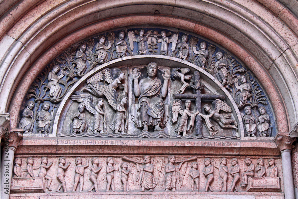 Obraz na plátně lunetta e architrave del portale ovest del battistero di Parma (portale del Rede