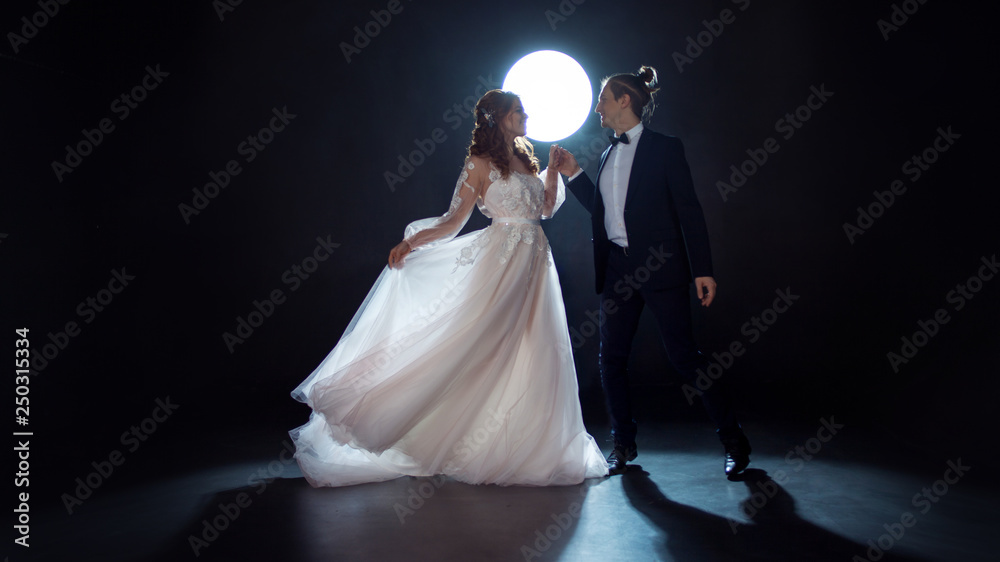 Obraz na plátně Mysterious and romantic meeting, the bride and groom under the moon