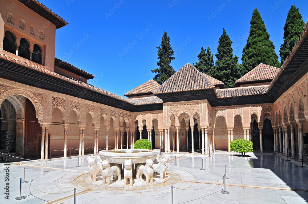 Obraz na plátně Patio de los Leones (Patio of the Lions) in the Palacios Nazaries, The Alhambra, Granada, Andalucia, Spain