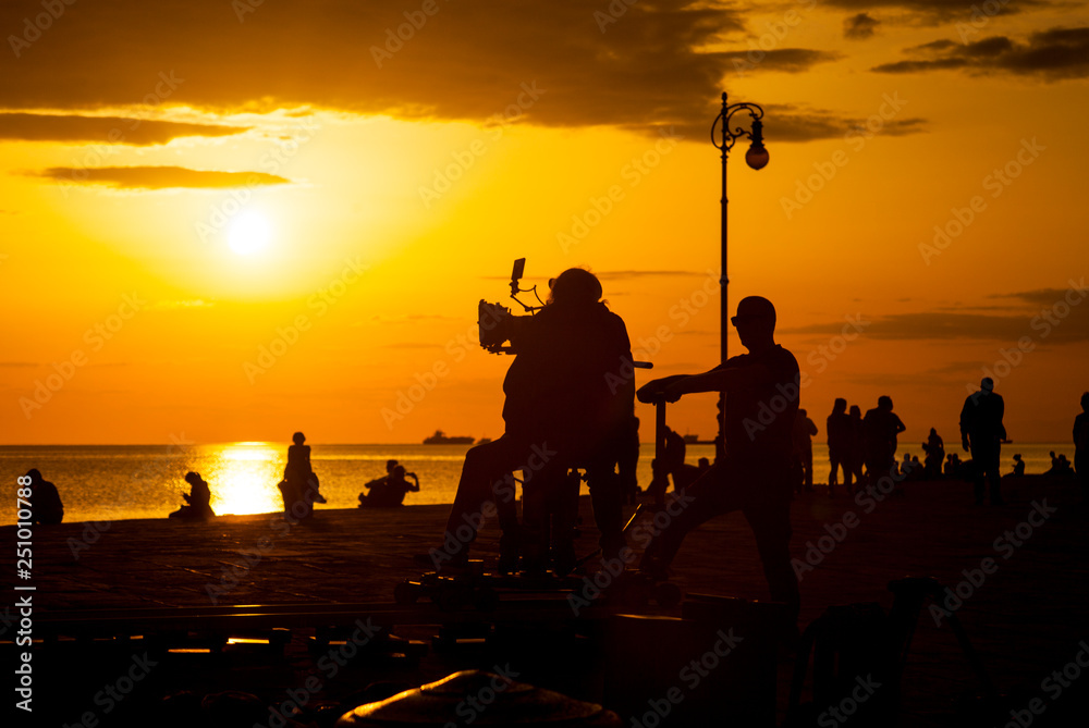 Obraz na plátně Film crew team filming movie scene