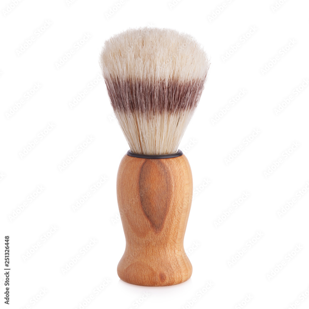Obraz na plátně Classic shaving brush with raccoon fur isolated on white