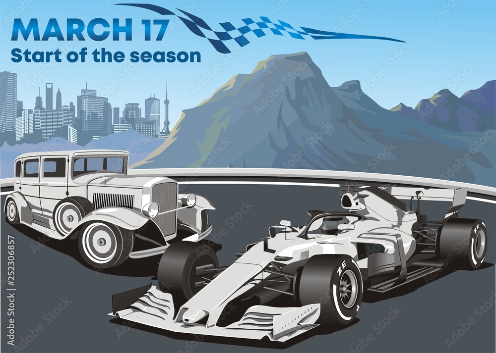 Obraz na plátně Racing cars old and modern f1 car. Vector illustration