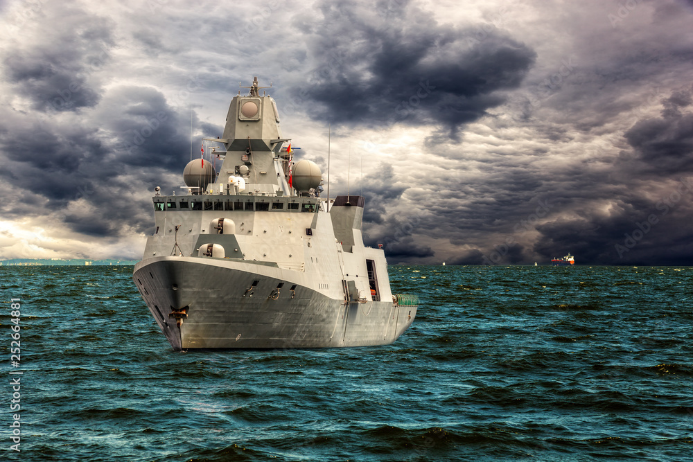 Obraz na plátně Warship on sea of dramatic scenery.