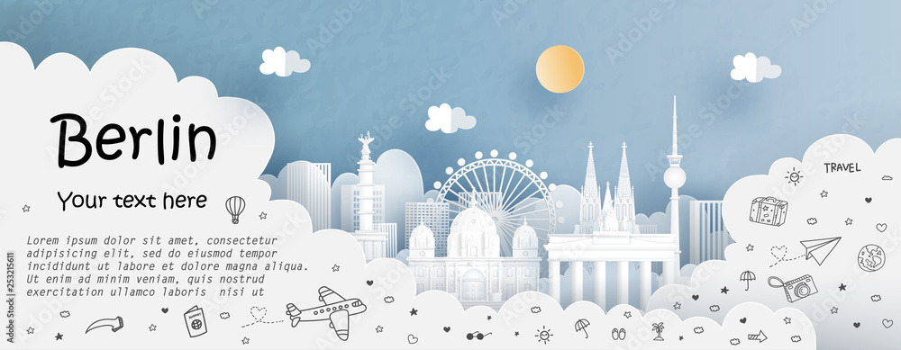 Obraz na plátně Tour and travel advertising template with travel to Berlin, Germany with famous