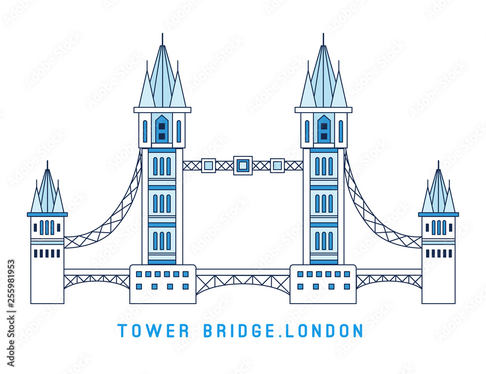 Obraz na plátně Line art Tower Bridge, England, symbol of London, European famous sight, vector illustration in flat style