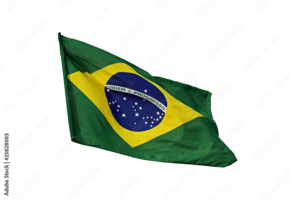 Obraz na plátně Nationalflagge Brasilien, freigestellt auf weißem Hintergrund