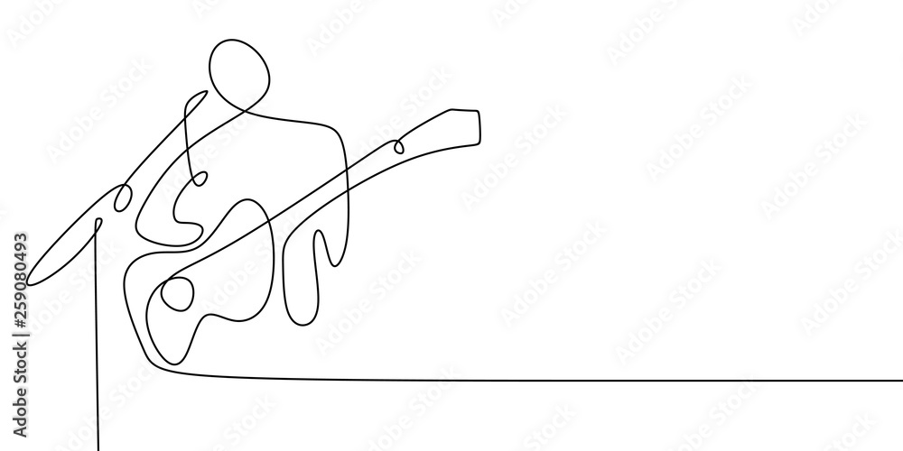 Obraz na plátně Acoustic guitarist continuous line drawing