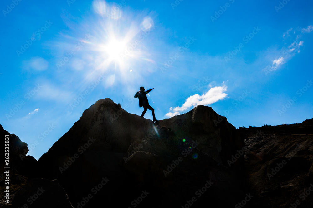 Obraz na plátně The adventures of a powerful and courageous mountaineer