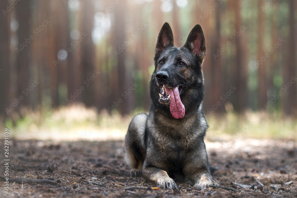 Obraz na plátně German shepherd in pine forest